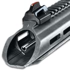 No strings attached! The Umarex AirSaber Arrow Rifle Airgun With Axeon Scope allows you to accurately launch arrows out to 70 yards with the power of air! It uses high-pressure air to propel a 350-grain arrow at velocities up to 480 fps with a fully-charged air tank. Arrows shot from a full tank reach energy levels up to 178 ft lbs. This is more than enough for hunting big game and is, in fact, legal in 10 states for deer and most states allow for predator/feral species hunting with devices of this kind. The AirSaber uses a special carbon-fiber arrow that weighs 250 grains by itself. These arrows accept standard and mechanical broadheads and are easily changed out. Shooters can expect to get 25 shots of big game lethal energy on one fill or 30 shots of predator lethal energy. The tank pressurizes at 3,625 PSI and the arrow rifle airgun comes with a Foster fitting fill probe for easy fills with an HPA compressor, hand-pump, or SCBA tank. The AirSaber is accurate out to 70 yards and beyond with the included Axeon Optics Air Archery Scope. It has four horizontal reticles configured for shooting the airbow with a full tank of air. Made exclusively for the AirSaber, the included six-pack of carbon-fiber arrows feature Straight Flight Technology and are able to withstand the extreme pressure created by the hard-hitting airbow. Each of the 276-grain arrows weighs in at 376 grains with the included field tip and features Adapta Point Technology.