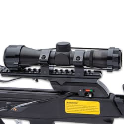 The adjustable composite stock features a Picatinny rail and an ergonomic bullpup-style trigger, moving the grip forward for better balance and control. A textured A2-style pistol grip, anti-dry-fire safety, and a 175-lb draw weight give you serious power without compromising handling. The package includes everything you need to hit the ground running—three 20" aluminum bolts, a quiver, cocking rope, string wax, goggles, and the scope.