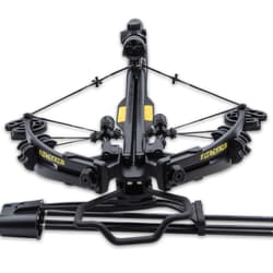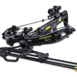 Dominate the range or the hunt with the Avalanche Thunderstruck Blade Crossbow, a powerhouse designed for speed, precision, and tactical performance. Firing bolts at up to 340 fps, this crossbow combines cutting-edge design with heavy-duty materials, including a compression fiberglass quad-limb system, aluminum die-cast riser, and die-cast cams. The integrated 4x32 scope helps you zero in with accuracy, while the string stopper reduces vibration for a smoother shot every time.