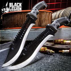 Black Legion Iron Phantom Bowie / Fixed Blade Knife - 3Cr13 Stainless Steel - Clip Point, Sawback, Black 2-Tone Finish - Belt Sheath - Tactical, Outdoors, Hunting, Survival, Camping - 15 1/4"