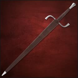 A wooden grip wrapped in genuine brown leather provides control and comfort, while the curved crossguard offers both protection and character. The flared pommel enhances balance and completes its authentic profile. To preserve and transport the sword, a brown leather scabbard is included, making this long sword a worthy choice for collectors, historical enthusiasts, and reenactors.