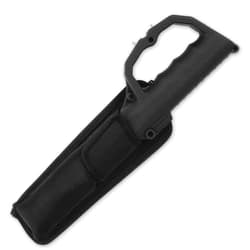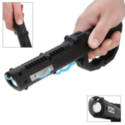 Secure in the reinforced nylon holster, it just looks like a baton. But, pull it out, turn off the safety and pull the trigger and it's a dominating stun gun with four points of contact. It's perfect for night watchmen because it goes quickly from flashlight to defense weapon with just a pull of the trigger. Includes wall charger and reinforced nylon sheath.
